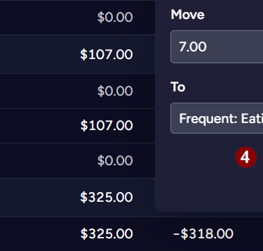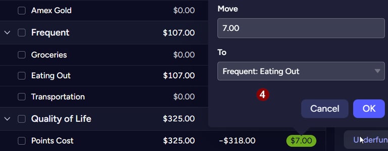 4. Then MOVE the $7 from the Points Cost category back to your Eating Out category: